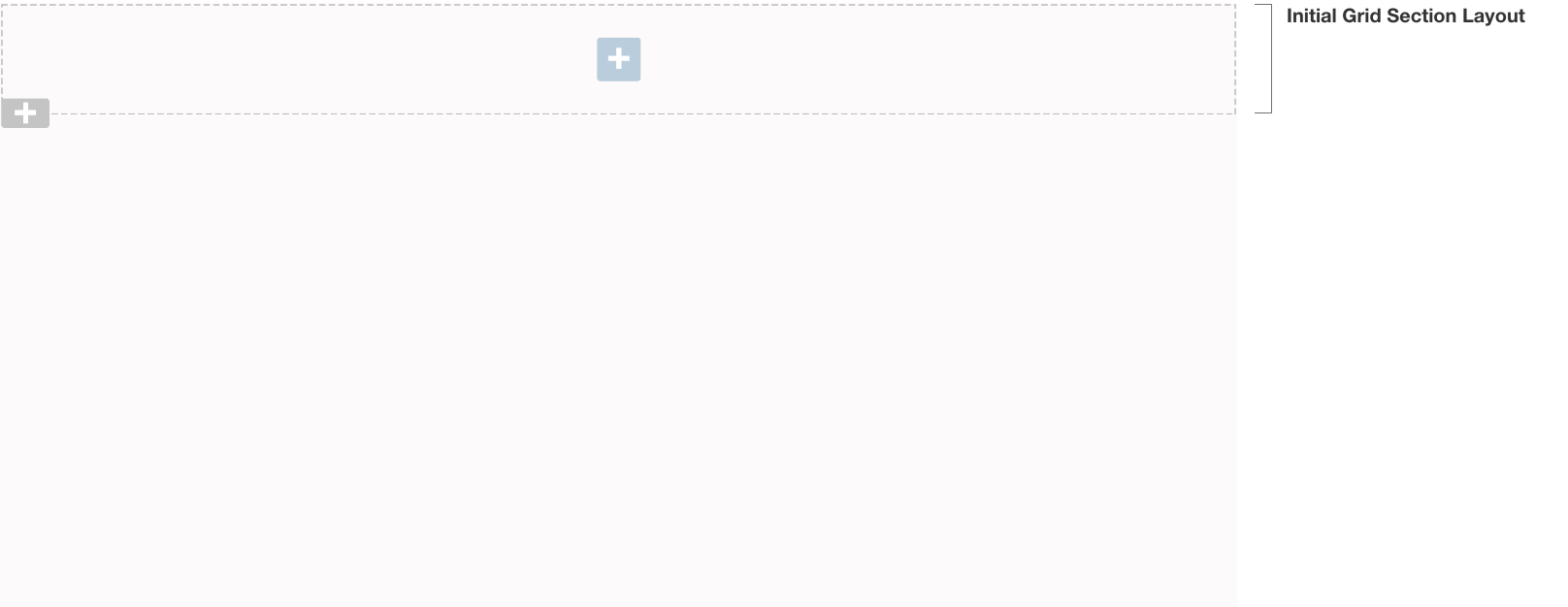 There is an initial Grid layout at the top of the page to get started. The blue plus icon signifies a place that a widget can be added. Once a widget is added, a new blue plus icon appears below. Note that each section layout can hold mulitiple widgets.